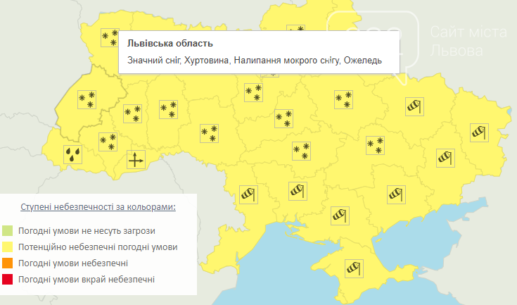 Головне управління ДСНС України у Львівській області закликає громадян дотримуватися елементарних правил безпеки та проявляти пильність та обережність, перебуваючи на вулиці. Також, прохання утриматись від поїздок після 15:00.