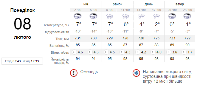 - 8 лютого - значні опади (мокрий сніг та дощ);