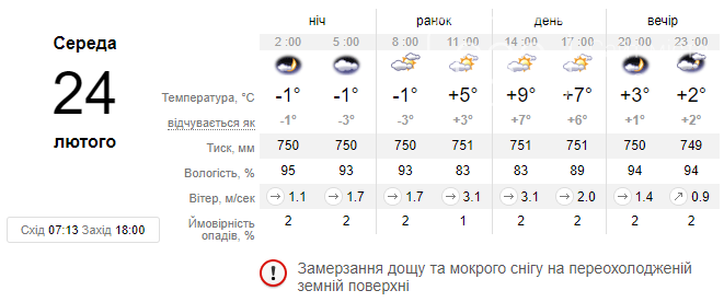 Також, згідно з інформацією Українського гідрометеорологічного центру, по території Львівської області 24 лютого на дорогах ожеледиця. Вночі та вранці туман видимістю 200 – 500 м.