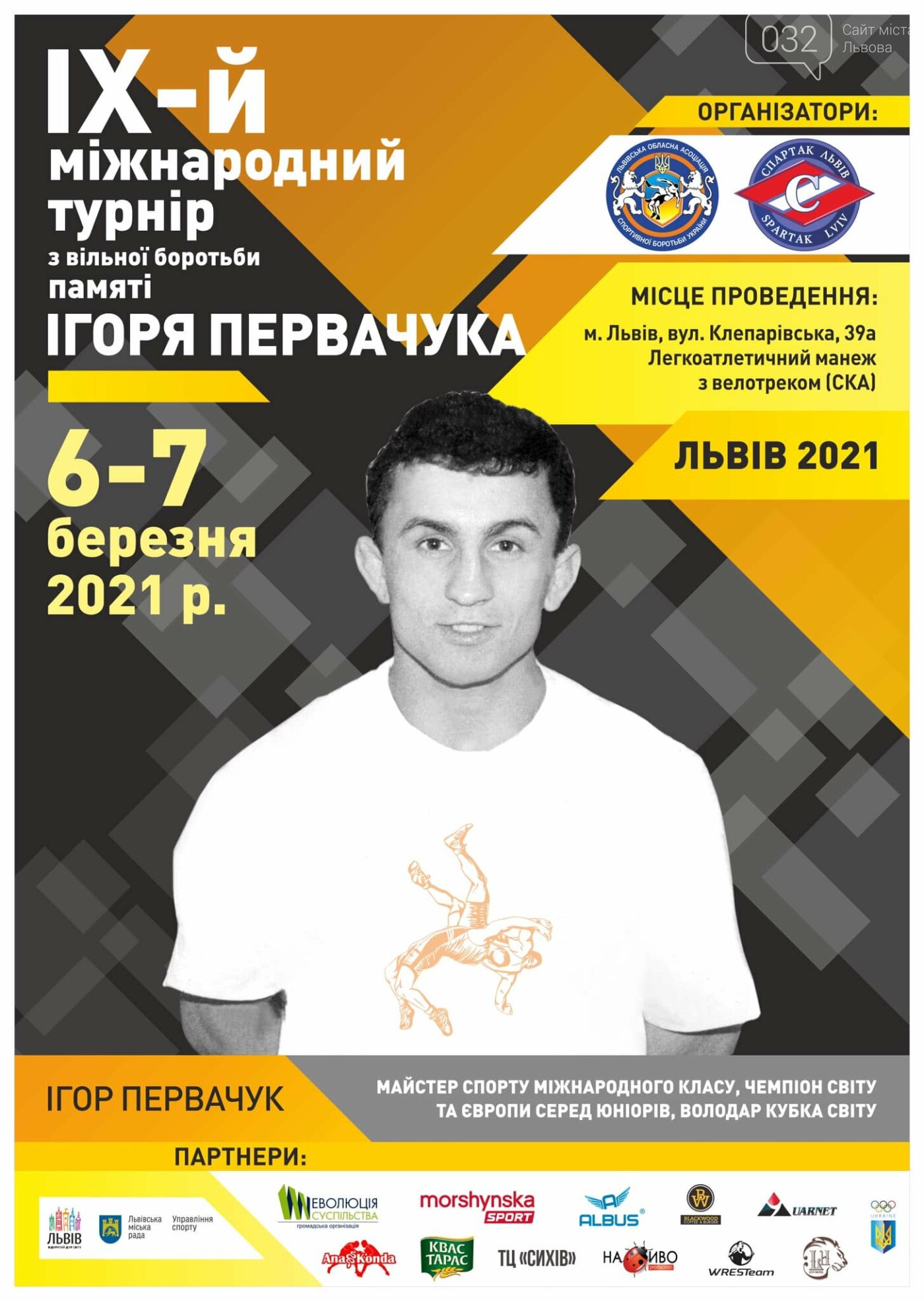 З 5 по 7 березня 2021 року в легкоатлетичному манежі «Велотрек СКА» (вул. Клепарівська, 39 а) відбудеться дев’ятий міжнародний турнір з вільної боротьби пам’яті майстра спорту міжнародного класу, чемпіона Світу і Європи серед юніорів та володаря Кубку світу Ігора Первачука.