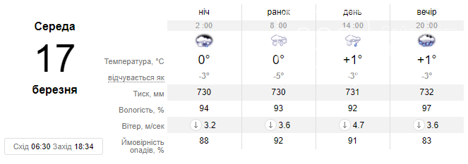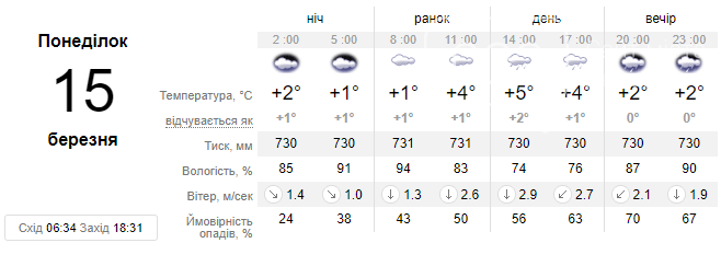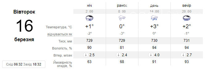 У Львові хмарна погода буде триматися до самого вечора. Уночі піде дощ зі снігом, який ще до ранку закінчиться. Більше опадів не передбачається.