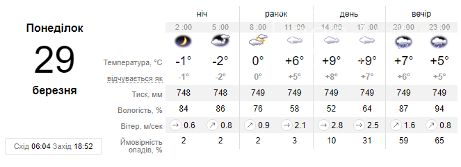 Понеділок, 29 березня