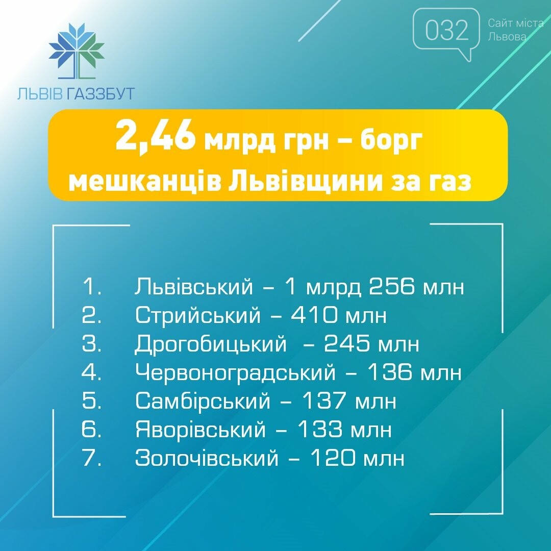 2,46 млрд грн заборгували жителі Львівщини за газ
