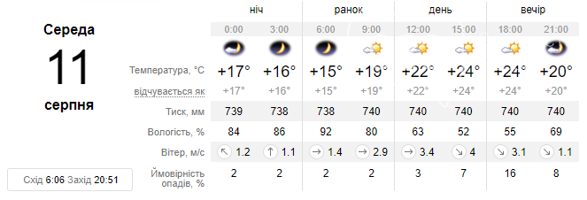 Прогноз погоди на середу, 11 серпня