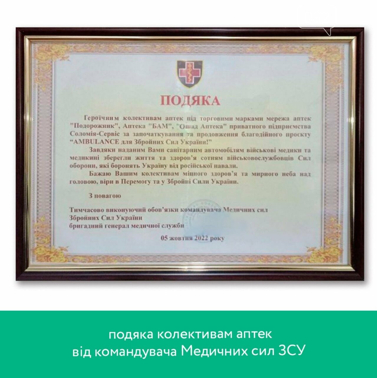 Ця ініціатива є дуже важливою для нас. Ми вважаємо час війни український аптечний рітейл повинен не тільки дбати про своїх клієнтів, а й робити внесок у перемогу. «AMBULANCE для ЗСУ» — лише один із тих проєктів, який відображає наше прагнення допомагати. Він став можливим завдяки підтримці мільйонів українців, які обирають наші аптеки та представників фармакологічних компаній, які зголосились підтримати ініціативу. Адже маленькі внески кожного роблять великі справи.