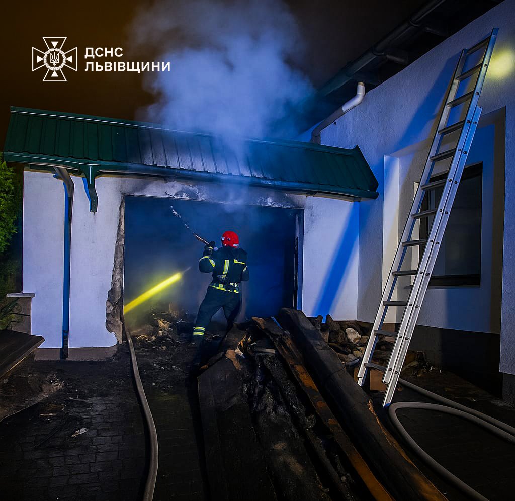 Загорілися речі побутового вжитку та дах споруди, існувала загроза поширення вогню на сусідній будинок, повідомляє ДСНС Львівщини.