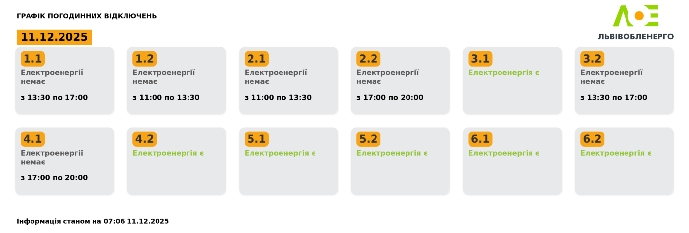 Читайте також: Стали відомі графіки відключення світла у Львові та області на 11 грудня
