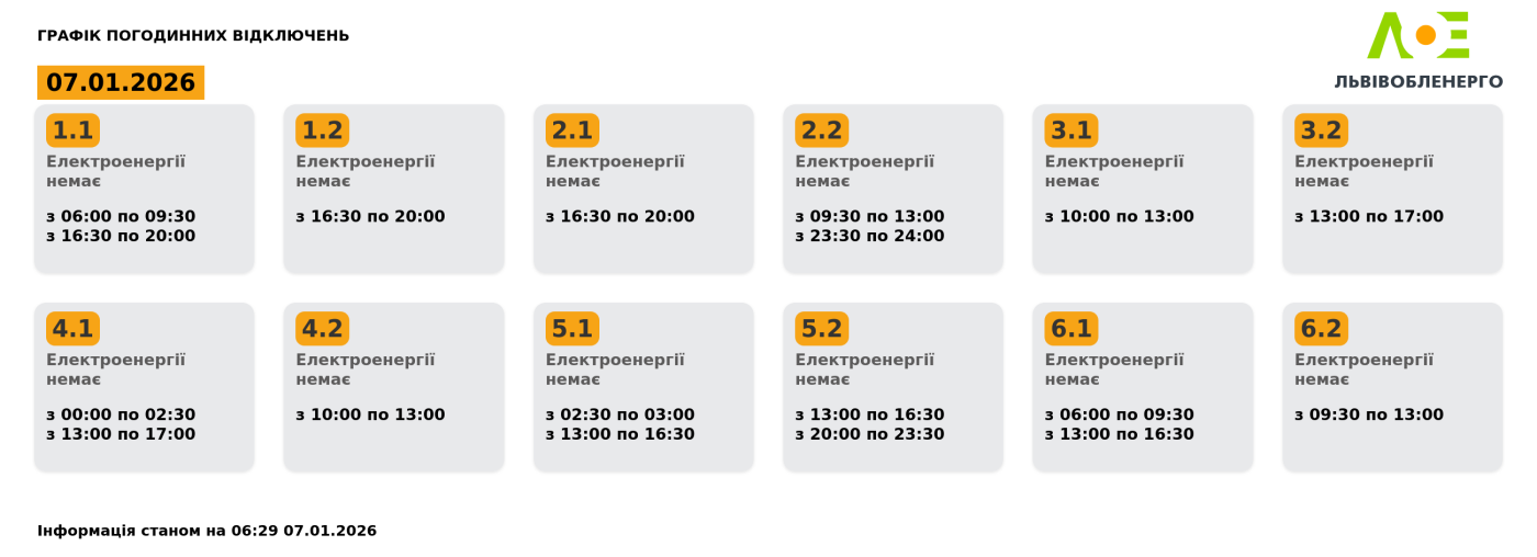 Читайте також: Стали відомі графіки відключення світла у Львові та області на 7 січня