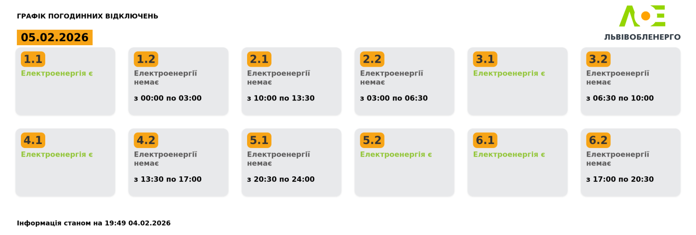 Стали відомі графіки відключення світла у Львові та області на 5 лютого