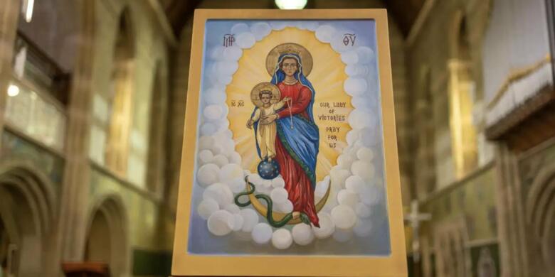 Ікону Божої Матері Переможної помістили у храмі в британському Олдершоті. Українську ікону Божої Матері Переможної (Icon of Our Lady of Victories) встановили у католицькому військовому соборі в місті Олдершот у Великій Британії. Образ створили у львівській майстерні за традиційними техніками. Про це повідомило видання Духовна велич Львова з посиланням на офіційний сайт Британської армії. Ікону встановили та освятили 7 жовтня в католицькому військовому собо...