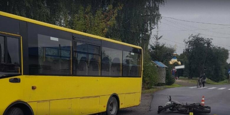 На Львівщині мотоцикліст потрапив до лікарні після зіткнення з автобусом. У суботу, 15 вересня, в одному з сіл Шептицького району Львівщини сталася дорожньо-транспортна пригода за участі автобуса та мотоцикла. Внаслідок аварії постраждав 23-річний водій двоколісного транспорту. Про це повідомили у відділі комунікації поліції Львівської області. "Аварія трапилась близько 9:00 на автодорозі “Шептицький – Перетоки”. За попередніми даними, зіткнулися автобус “...