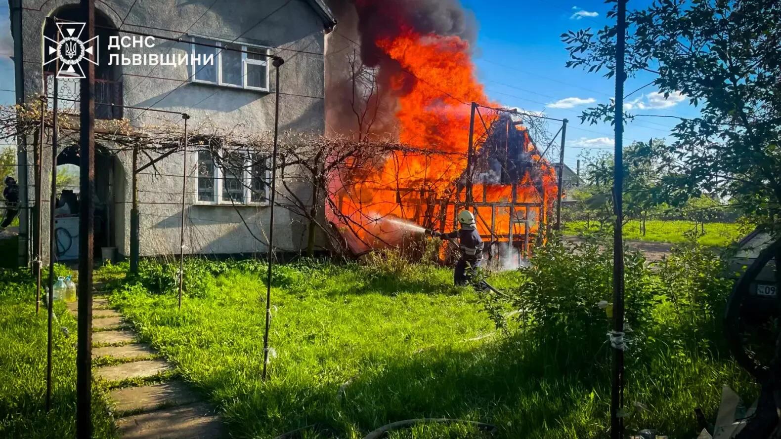У вівторок, 30 квітня, о 17:35 до Служби порятунку «101» надійшло повідомлення про пожежу в селі Терновиця Яворівського району. Загоряння виникло в дерев’яній господарській споруді на території дачного кооперативу. На момент прибуття рятувальників вогонь повністю охопив господарську будівлю та перекинувся на дах двоповерхового цегляного дачного будинку, що стояв поруч. Про це повідомляє ГУ ДСНС України у Львівській області. Пожежу вдалося локалізувати о 1...