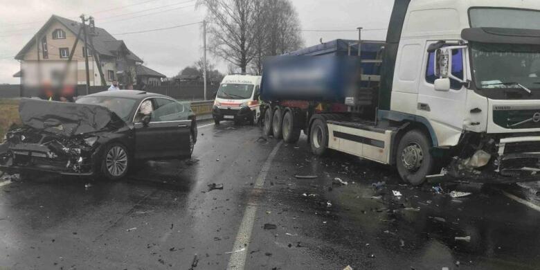 У понеділок, 17 листопада, на трасі “Київ — Чоп” поблизу Самбора зіткнулися легковик та вантажівка. Рух дорогою перекритий в обидві сторони. Про це повідомила пресслужба патрульної поліції Львівської області. “Київ — Чоп біля села Нагірне (Львівська область) сталася ДТП з травмованими. Рух перекритий в обох напрямках. Обʼїзд здійснюється узбіччями”, — зазначила пресслужба патрульної поліції. Читайте також: Митники на Львівщині зупинили бус із контрабандою...