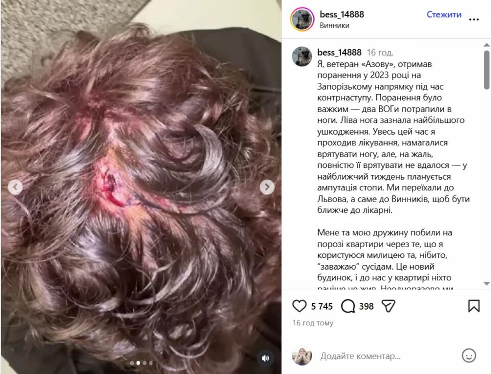 У Львові стався інцидент із жорстоким побиттям пораненого ветерана полку «Азов» та його дружини. За словами чоловіка, конфлікт виник через нібито «галасливі милиці», якими він користувався після тяжкого поранення на фронті. Постраждалий оприлюднив відео та детально описав ситуацію у своєму дописі в Instagram. Ветеран розповів, що у 2023 році отримав важке поранення на Запорізькому напрямку під час контрнаступу: два ВОГи влучили в ноги, а ліва зазнала найб...