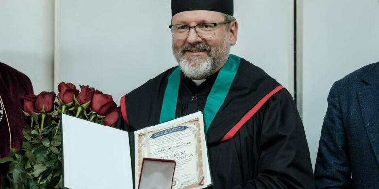 Блаженнішому Святославу надали почесне звання з нагоди 241-го дня народження університету. Львівський національний медичний університет імені Данила Галицького надав главі Української греко-католицької церкви Блаженнішому Святославу почесне звання Doctor Honoris Causa. Подія відбулась з нагоди 241-го дня народження університету. Про це 14 листопада повідомив керівник Львівської ОВА Максим Козицький. Читайте також: При вході Голосківського кладовища у Львов...